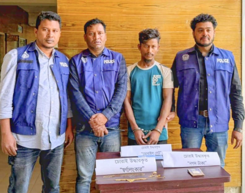চট্টগ্রামের আনোয়ারায় একটি চুরির ঘটনায় মাত্র ৪৮ ঘণ্টার মধ্যে চোরাইকৃত স্বর্ণালংকার, নগদ অর্থ ও একটি মোবাইল ফোন উদ্ধার করেছে পুলিশ। এ ঘটনায় এক ভাসমান চোরকে গ্রেপ্তার করা হয়েছে।